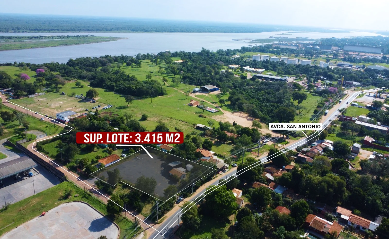 Terreno de 3.415m2 de superficie, con 49.7 m de frente, sobre la Avenida San Antonio, a lado de la Petrolera Petrosan,