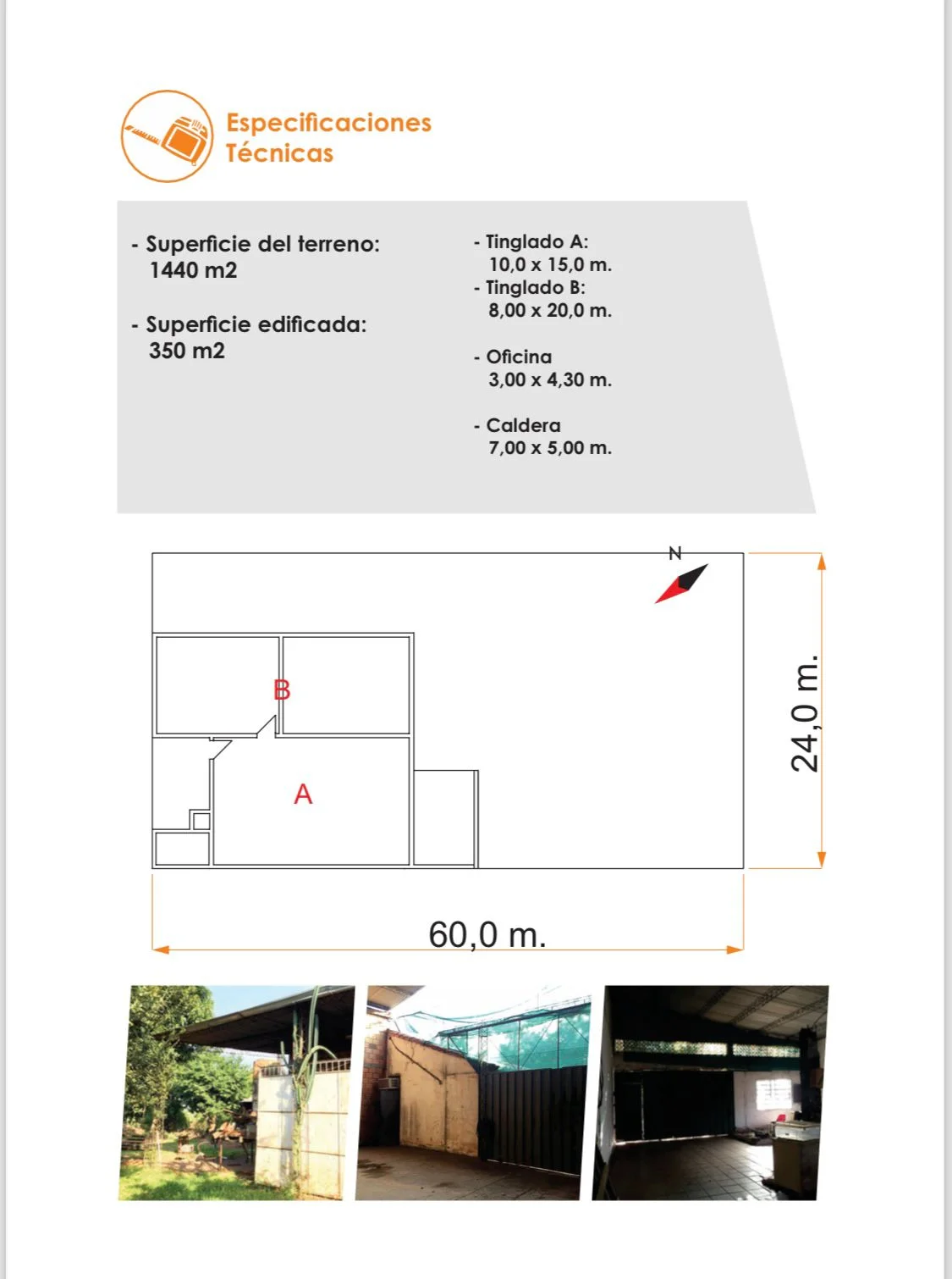 - Tinglado A: 10,0 x 15,0 m.