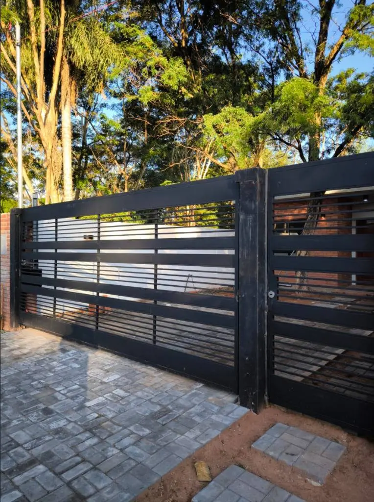 Línea clásica, fachada minimalista con portones modernos con estructura sólida.