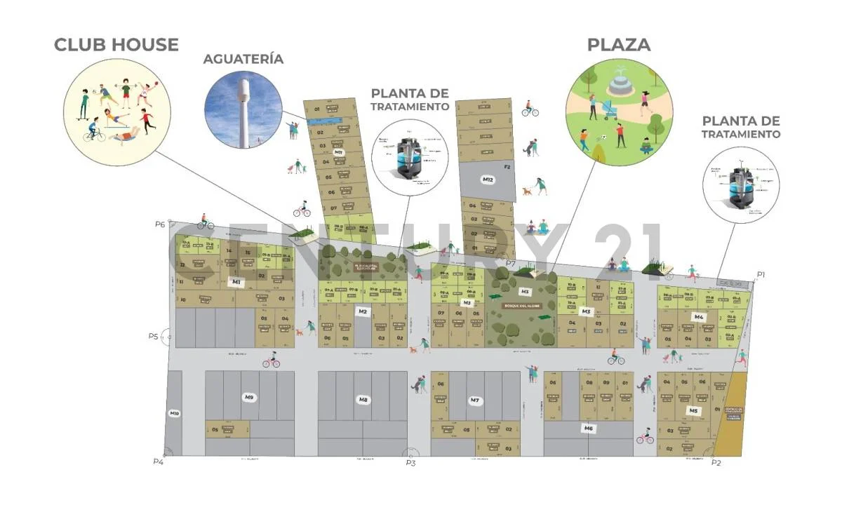 El barrio cuenta con: Seguridad 24/7, plaza central de 2.500 m², Club House y piscina (en construcción), calles arborizadas y diseño amigable con el entorno.