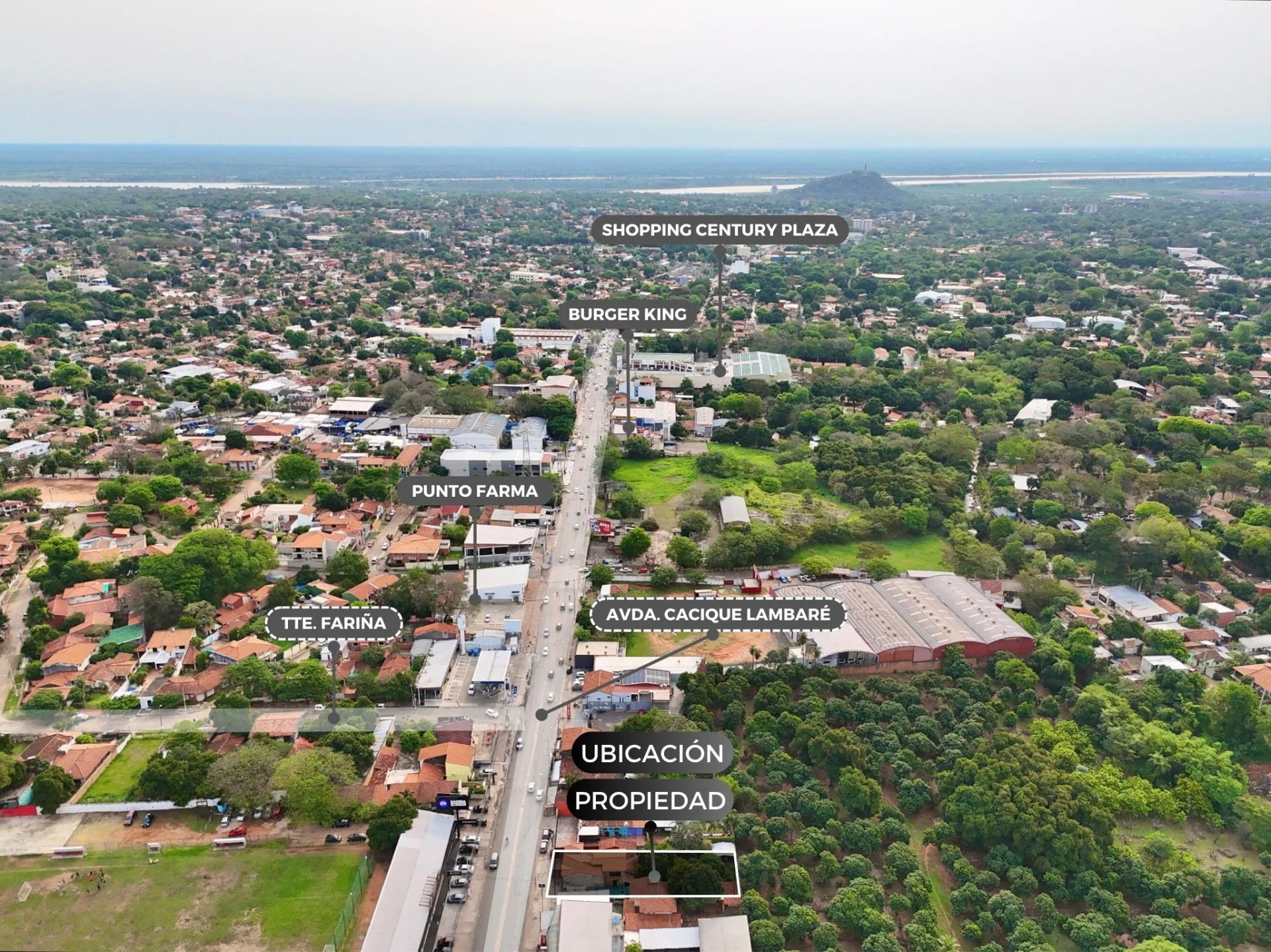 Ubicación estratégica entre Shopping Century y Paseo Cerro Alto, ideal para proyectos comerciales o inversión inmobiliaria.