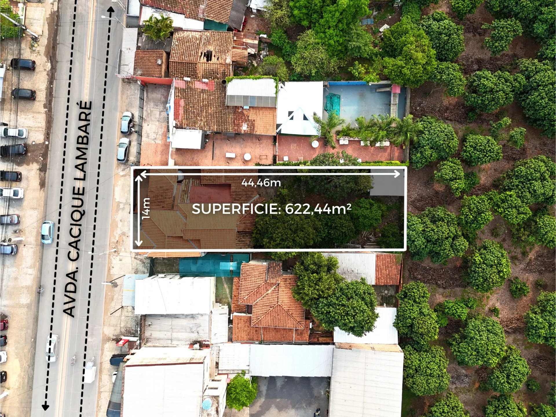 Dimensiones del terreno: 14 x 44,46 m² (Total: 622,44 m²)
