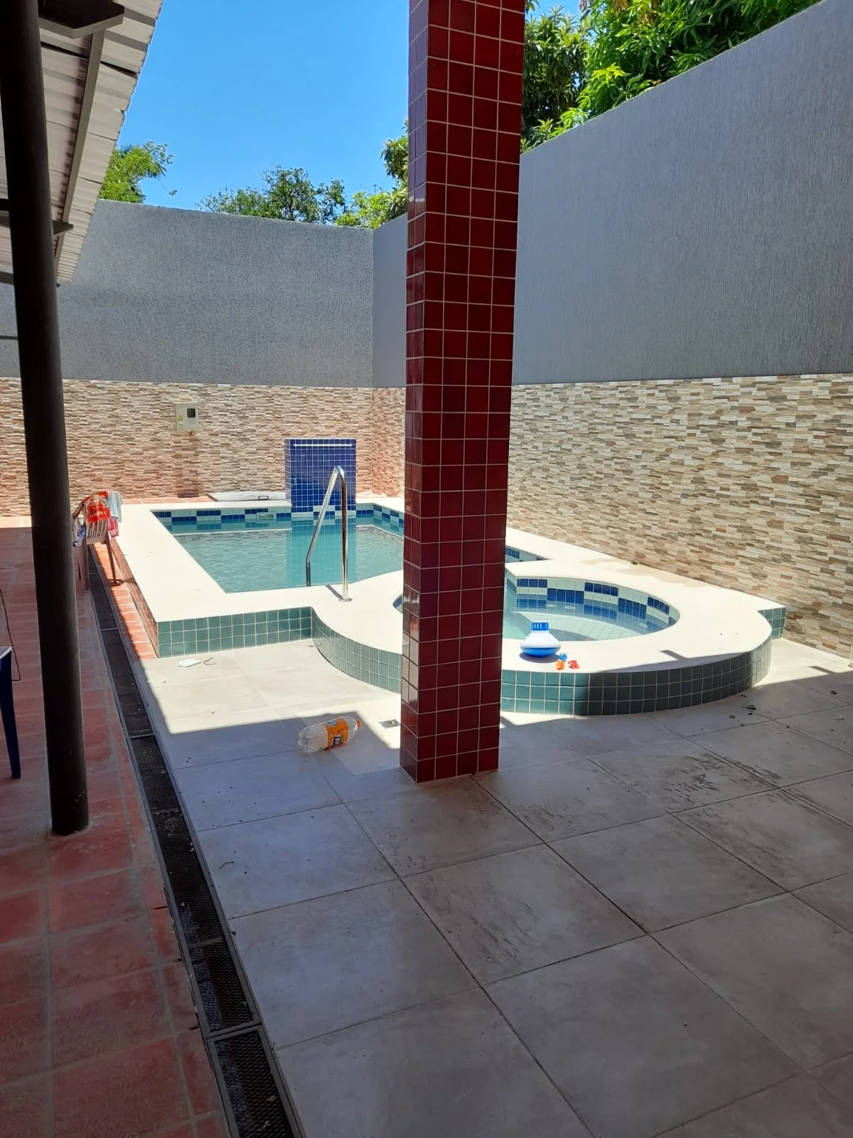 Patio trasero con piscina e hidromasaje con 2 motores de 1hp c/u.