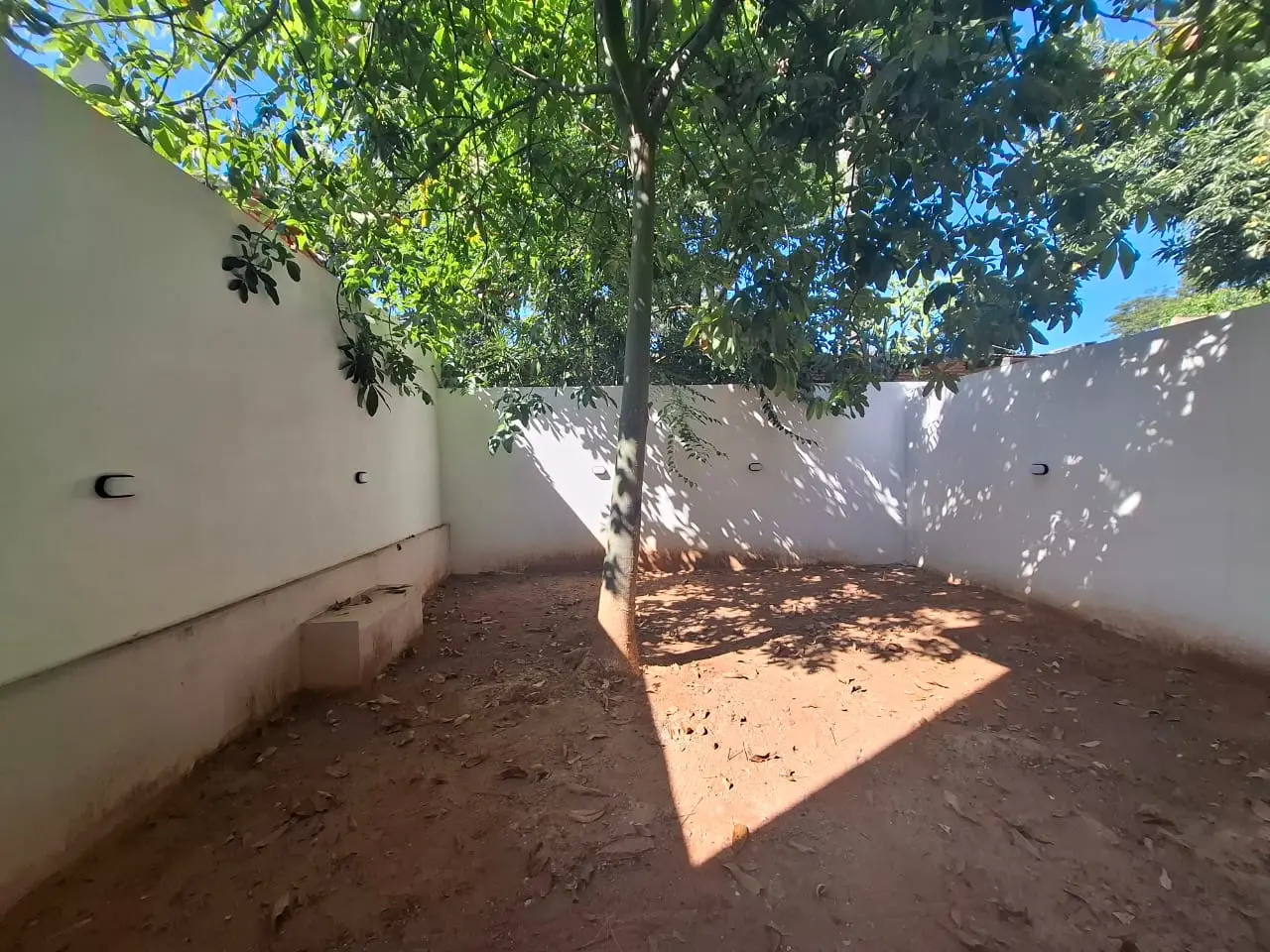 - Patio con árbol y empastado