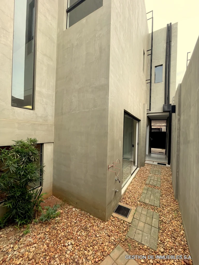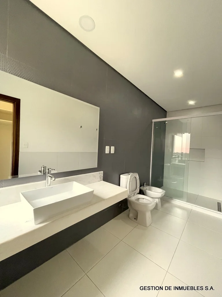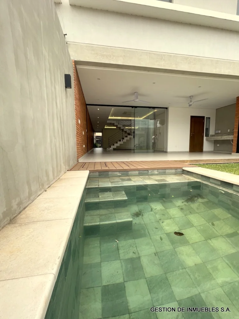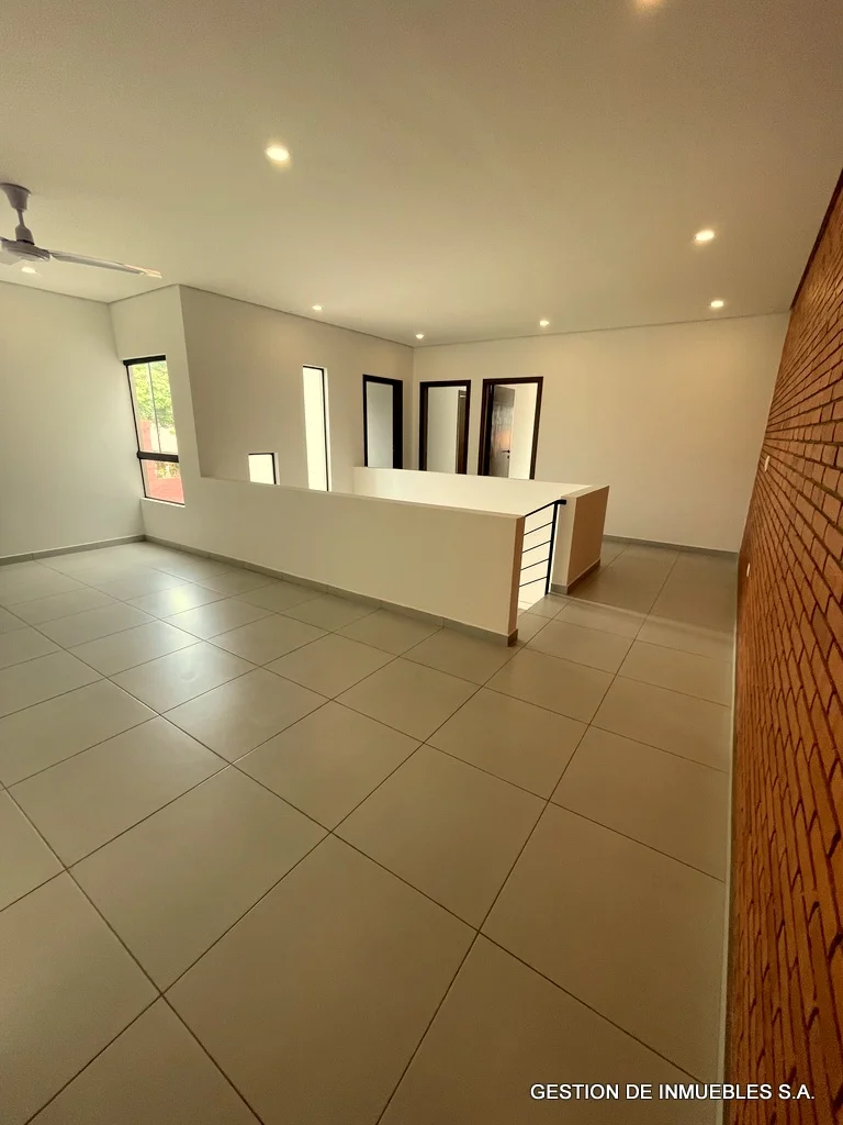ZONA CONFEDERACION – ALQUILO DUPLEX A30-13-7 Hermoso dúplex a estrenar de 302 m2 de edificación, con todas las comodidades, súper equipado, de dos plantas con las sgtes comodidades: Terreno de 8 x 30 metros Planta baja: cochera para dos vehículos. Sala y comedor amplios, baño social, cocina completamente amoblada, galería techada con parrilla, patio empastado con piscina. Área de servicio con acceso independiente, dormitorio, baño y área de lavadero y tendedero. Planta alta: amplio y espacioso estar íntimo, depósito. 2 dormitorios familiares con baño en suite cada uno y placares. 1 habitación principal súper amplia con baño en suite y vestidor. Además: Sala con Split de 36.000 BTU Comedor con Split de 36.000 BTU Tanque de agua de 1.500 litros Dormitorio principal con Split de 24.000 BTU Dormitorios familiares cada uno con Split de 18.000 BTU Alarma y sensores de movimiento Cerco eléctrico Todos los baños con espejos Alquiler mensual Gs. 8.000.000.-
