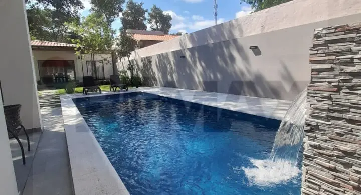 Piscina con cascada + iluminación LED