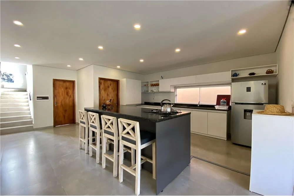Planta Baja: sala-cocina-comedor, patio, piscina, garaje para 3 vehículos, área de servicio, baño externo, área de lavadero, baño social, deposito.