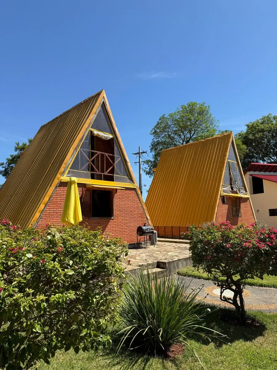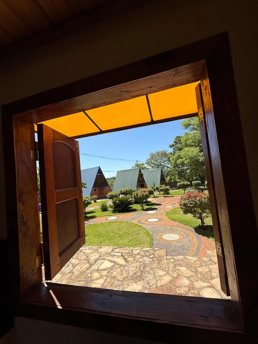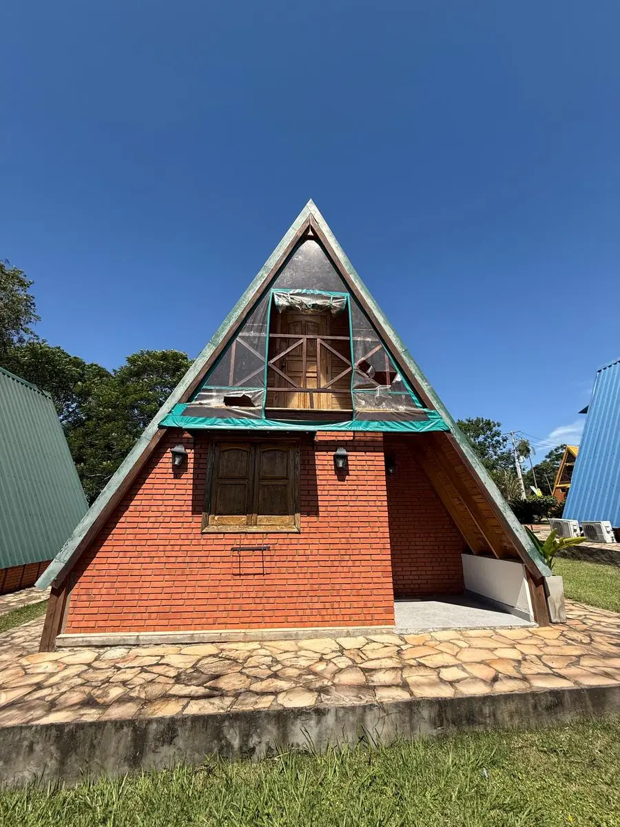 - Infraestructura: . 6 cabañas totalmente equipadas (para 2 y 4 personas) . Club House ideal para cafetería . Piscina con cascada (48.000 L) . Quincho climatizado para eventos . Amplio estacionamiento privado . Áreas verdes, juegos infantiles y cascadas . Vivienda para encargados