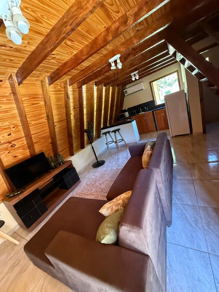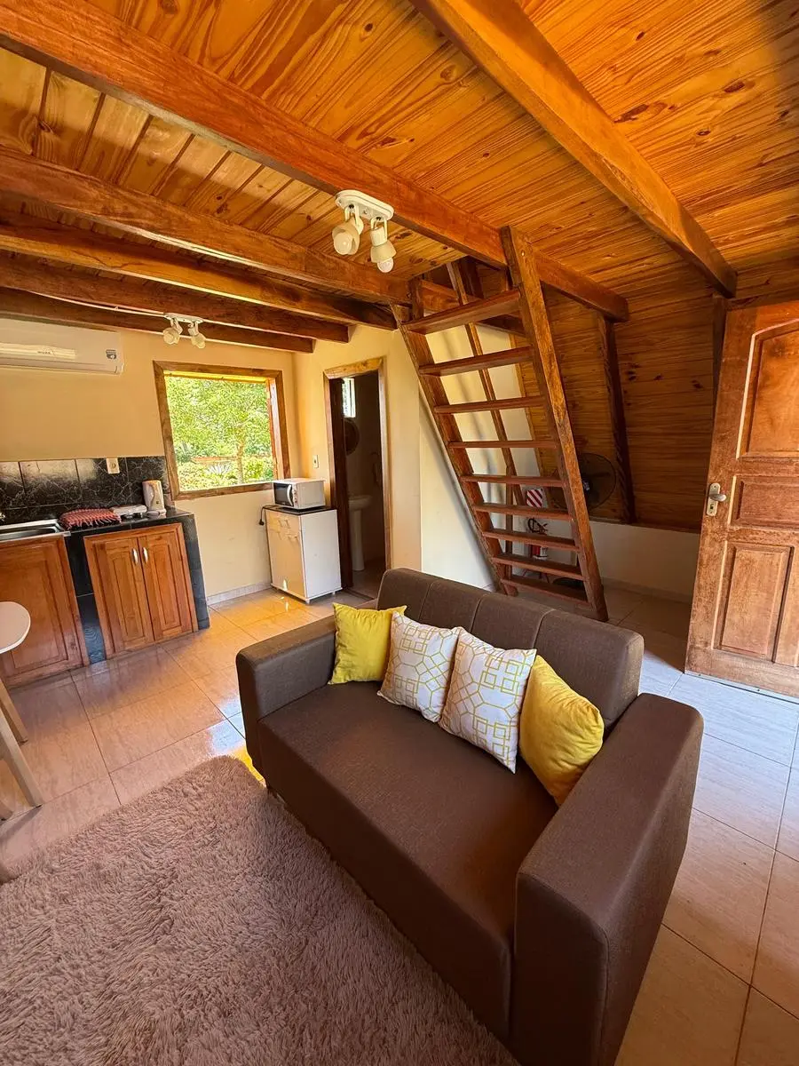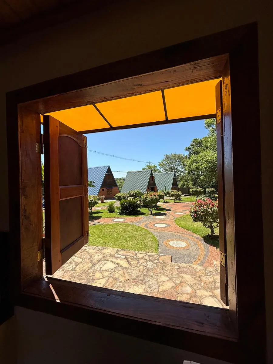 - Infraestructura: . 6 cabañas totalmente equipadas (para 2 y 4 personas) . Club House ideal para cafetería . Piscina con cascada (48.000 L) . Quincho climatizado para eventos . Amplio estacionamiento privado . Áreas verdes, juegos infantiles y cascadas . Vivienda para encargados