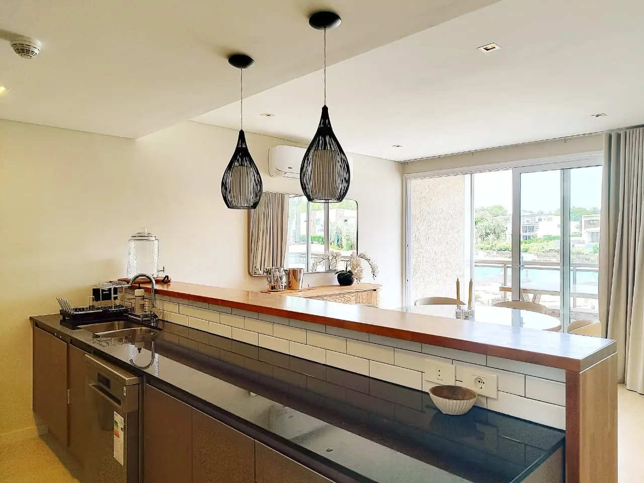 En el edificio Bali 4 de Aqua Village, este departamento en el primer nivel ofrece una solución técnica de habitalidad de lujo mediante una unidad totalmente amoblada con equipamiento de primer nivel. La estructura integra dos dormitorios, siendo uno en suite, con una sala amplia y luminosa conectada a un balcón con vista perimetral, optimizando el confort térmico y visual de los residentes en un entorno de 60 hectáreas de naturaleza protegida.