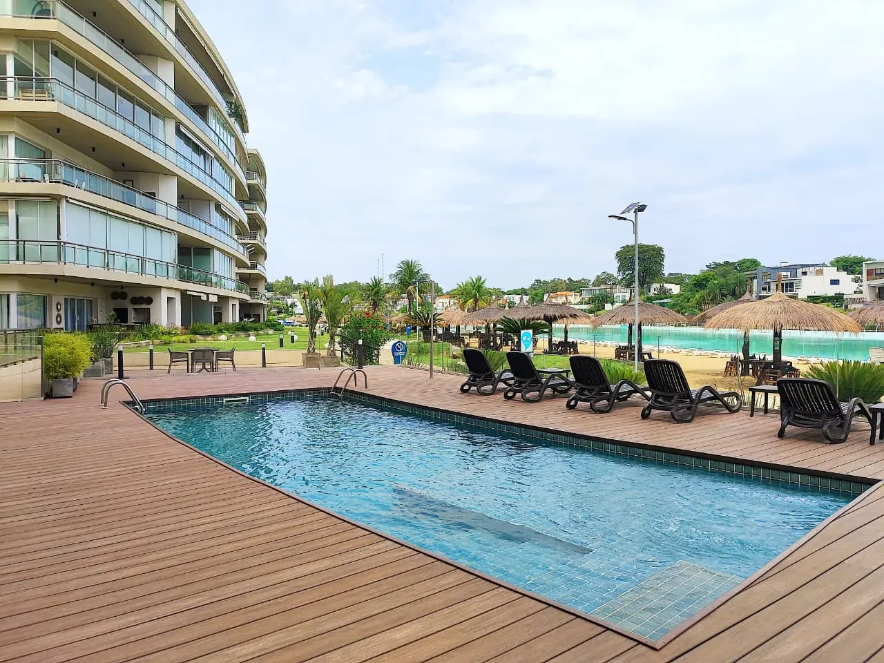 Infraestructura hídrica: Acceso directo a Crystal Lagoon de 26.000 metros cuadrados Seguridad operativa: Generador propio para todo el edificio y recepción 24 horas Deportes y ocio: 2 canchas de tenis y parque de 60 hectáreas
