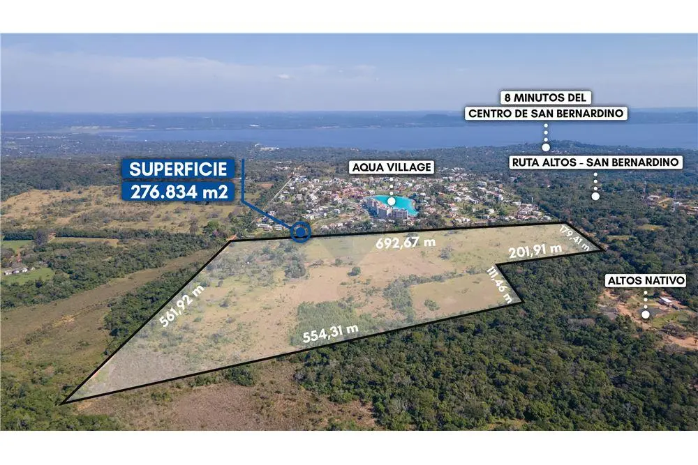 En venta hermosa propiedad de 27 hectáreas ubicado en Altos a metros de la ruta San Bernadino - Altos, frente al condominio Aqua Village, a pasos del barrio cerrado Altos Nativo y cercano a Granja Don Papalo, a minutos del centro de San Bernadino. Única oportunidad de Inversión para desarrollo inmobiliario. 036034-138