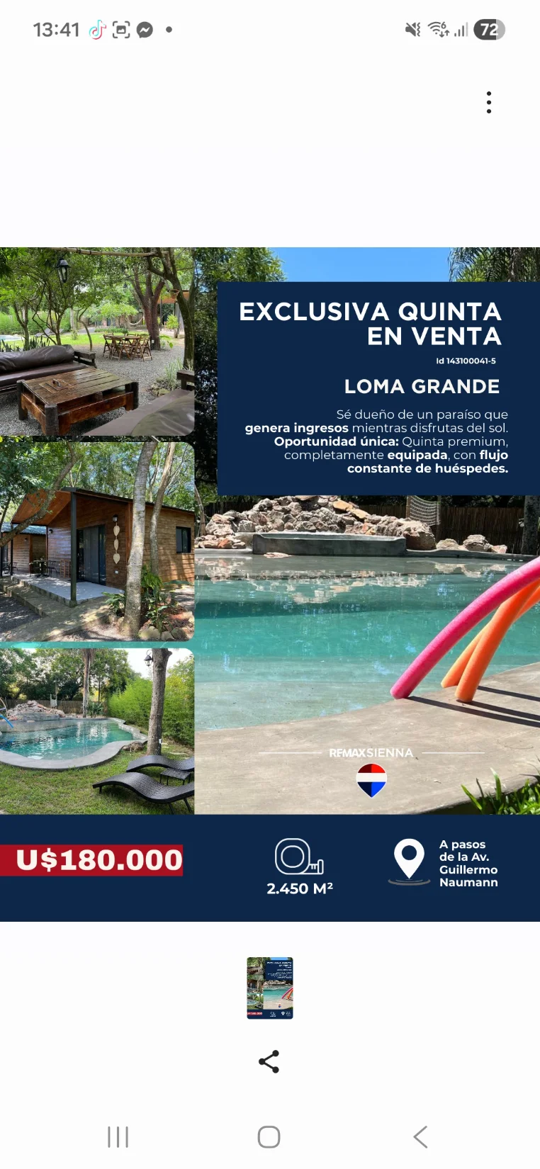 Ubicación Estratégica en LOMA GRANDE: A solo 1 hora de Asunción, 10 min de Altos y 20 de San Bernardino, con acceso directo a la ruta Altos-Loma Grande y transporte público (línea Lomagrandense) a pocos metros. Ideal para escapadas, vivienda familiar o inversión turística.