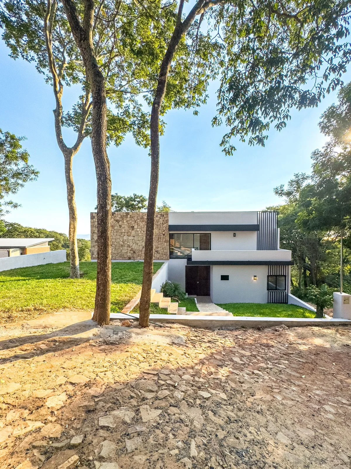 Residencia de 5 dormitorios a estrenar con vistas al Lago Ypacaraí – La Suiza, San Bernardino ? Ubicada en la exclusiva zona de La Suiza, San Bernardino, esta residencia de diseño se encuentra actualmente en construcción, con entrega prevista para enero. La propiedad se desarrolla sobre un terreno en desnivel, lo que permite una implantación estratégica que eleva la casa y genera la sensación de amplitud, otorgando además privilegiadas vistas panorámicas al Lago Ypacaraí desde casi todos sus ambientes. Gracias a esta ubicación en desnivel, la vista al lago permanecerá siempre despejada, sin riesgo de ser obstruida por futuras construcciones. Superficies: • Terreno: 1.208 m² • Construcción: 310 m² Precio de venta: 450.000 USD Estacionamiento: Capacidad para 4 vehículos Apto para crédito bancario ⸻ Planta Alta • Cuatro dormitorios con placares y vista al lago. • Dos dormitorios en suite. • Dos dormitorios con baño compartido. Planta Baja • Recibidor. • Amplio comedor integrado con sala y cocina, iluminados naturalmente y con vistas al lago. • Chimenea. • Dormitorio en suite con placares. • Baño social. • Área de servicio completa (dormitorio y baño). • Galería de 40 m² con parrilla y vistas al lago. Nivel -1 / Subsuelo • Amplio ambiente multiuso con baño. • Salon multiuso. • Depósito. • Piscina de 9 x 3 m con solárium y vistas al lago. • Jardín en desnivel, ideal para fogatas y actividades al aire libre. ⸻ La residencia combina elegancia y funcionalidad en un entorno natural único. Sus amplios ventanales integran la luz y el paisaje, potenciando la experiencia de vivir frente al Lago Ypacaraí. El diseño en desnivel no solo aporta carácter arquitectónico, sino que también maximiza el aprovechamiento de los espacios exteriores y de las vistas privilegiadas, asegurando que la vista al lago nunca se vea comprometida. Ubicación: https://maps.app.goo.gl/abfke1i9EELydeRL8?g_st=ipc