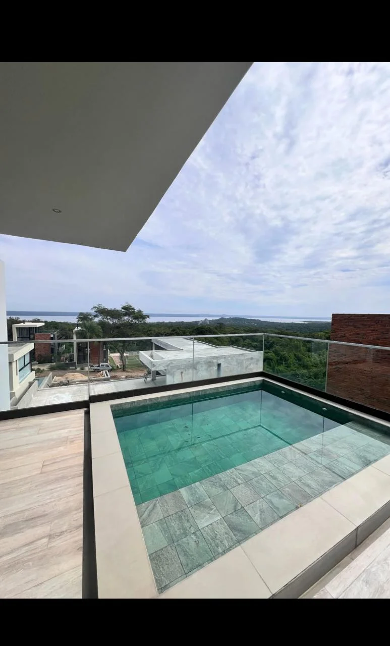 ✨Casas de 3 niveles, 3 habitaciones, balcón amplio y una terraza privada con piscina y vista al lago.