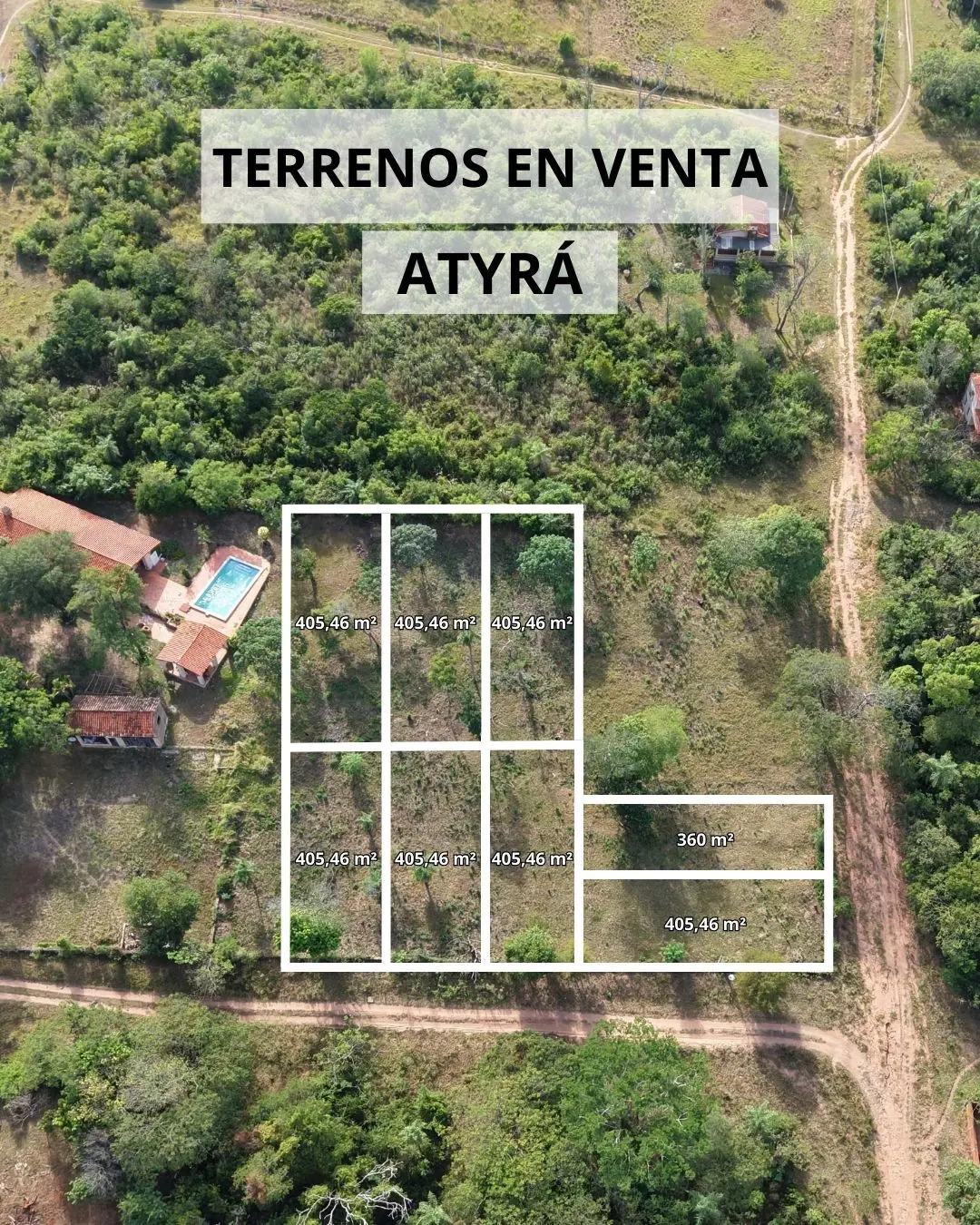 Se venden 8 terrenos ubicados a solo 450 metros de la Ruta Caacupé – Atyrá y a 1 km del centro de Atyrá.