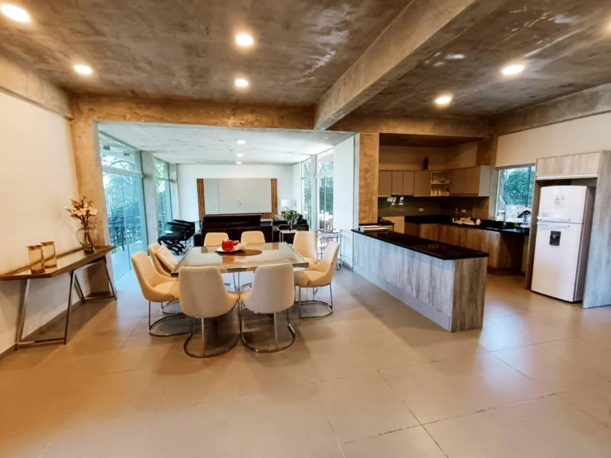 EN VENTA LUJOSA RESIDENCIA EN SAN BERNARDINO Ubicación privilegiada, en esquina, La Suiza https://maps.app.goo.gl/PhYtYwmjBx8Ht1ep9 Superficie 811 m2 Construcción: 590m2 Residencia totalmente amoblada y equipada, con cortinas anti - solares. Planta Baja Sala estar social y amplio comedor, amoblada y equipada. Cocina totalmete amoblada y equipada con barra desayunador. Todos los electrodomésticos incluidos. Baño Social Galería y Quincho con parrilla y barra. Amoblada con juego de comedor Piscina Baño de la piscina Deposito Area de servicio con baño Cochera para varios vehículos Planta alta 3 habitaciones , 1 en suite con su baño privado. Dos amplias habitaciones con un baño. Estar amplio e íntimo. Con balcon, vista al lago. Generador eléctrico Tanque de agua, con motor de presión de agua Todas las dependencias cuentan con aire acondicionado Terraza con vista panorámica al Lago.