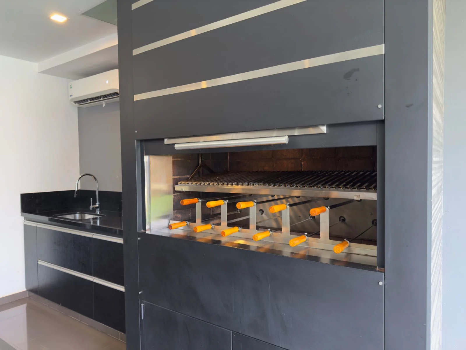 -Quincho con parrilla (Giragrill- 11espadines y parrilla fija en acero inoxidable).