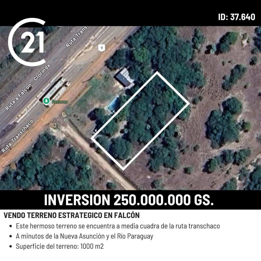 1.000 m² en Falcón, a solo media cuadra de la Ruta Transchaco, con excelente conectividad hacia la capital y zonas en crecimiento.