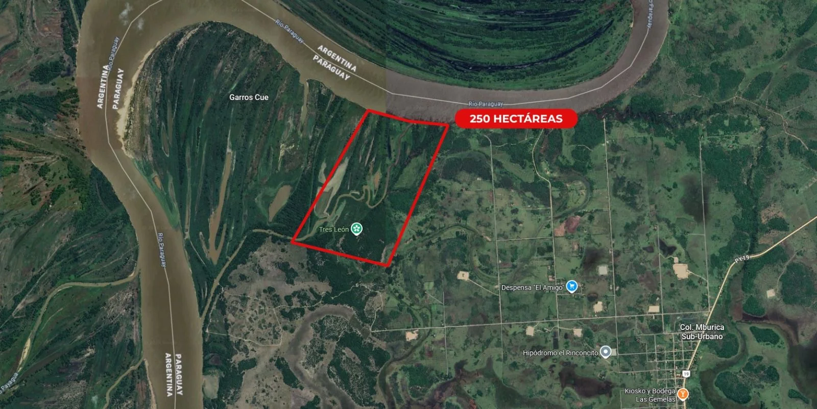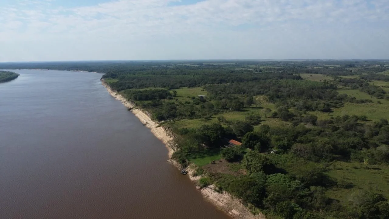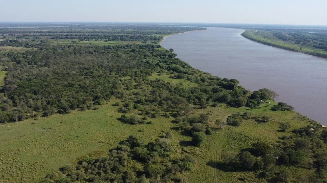 ????Amplio frente sobre el río Paraguay, la cual bordea la propiedad en frontera con Argentina.