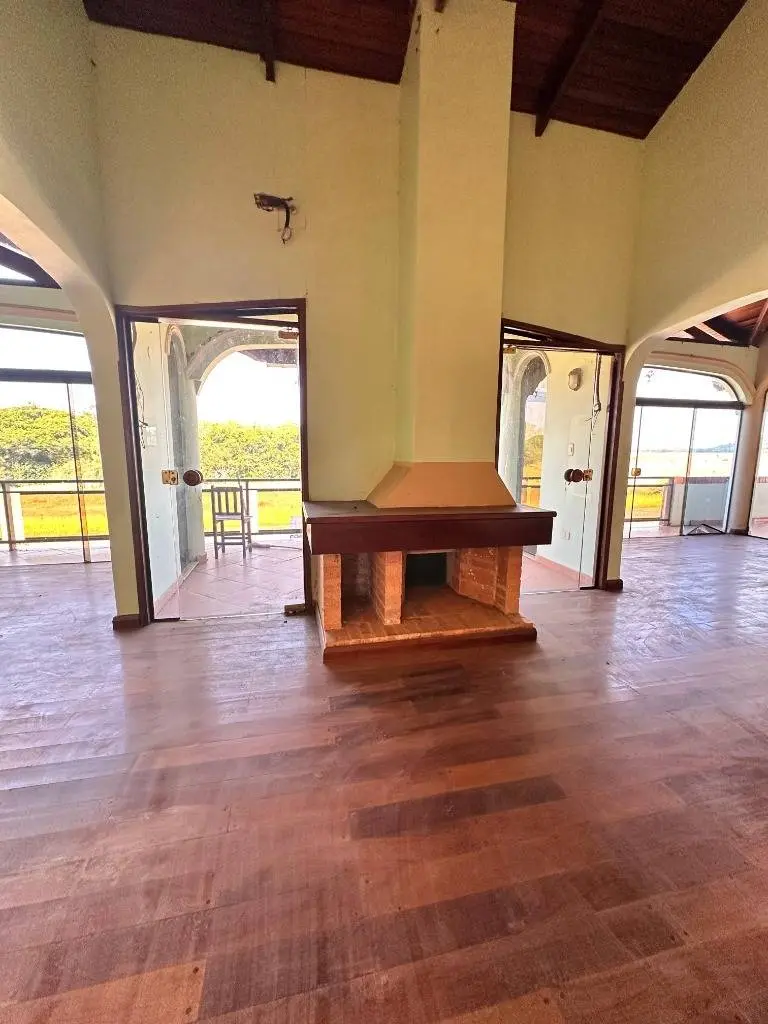 Sala comedor con chimenea, piso de parquet, baño social, amplios balcones.