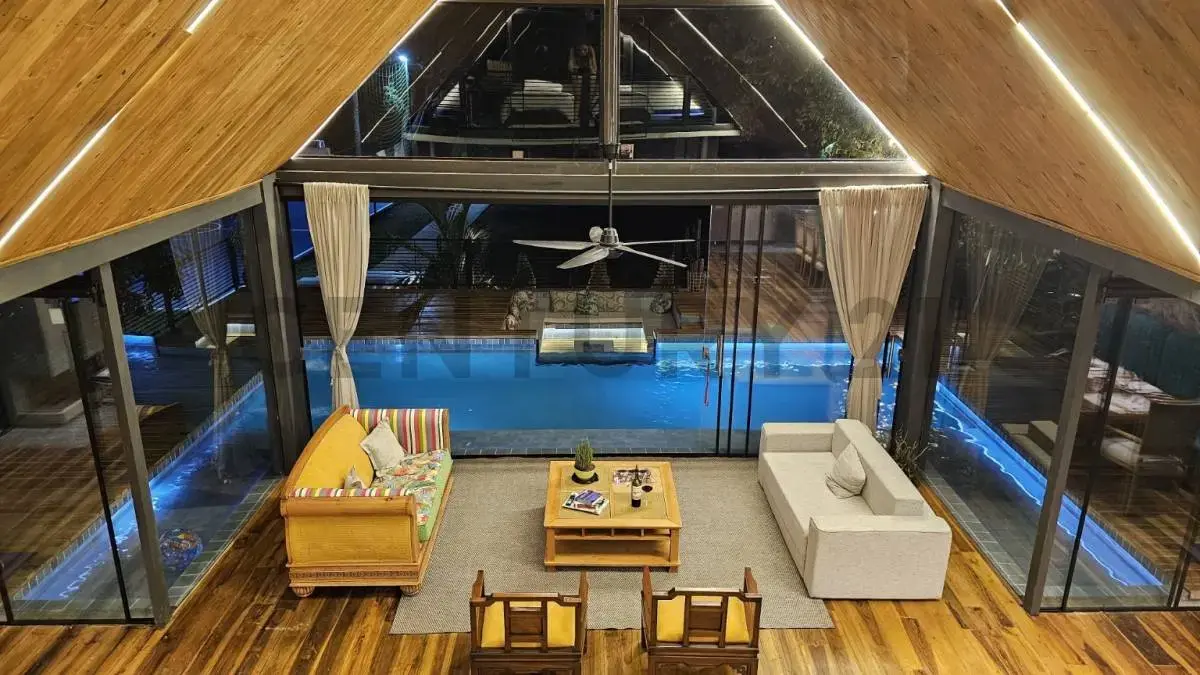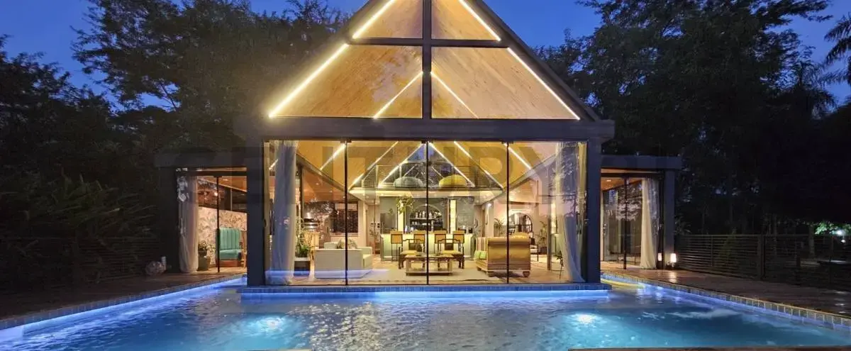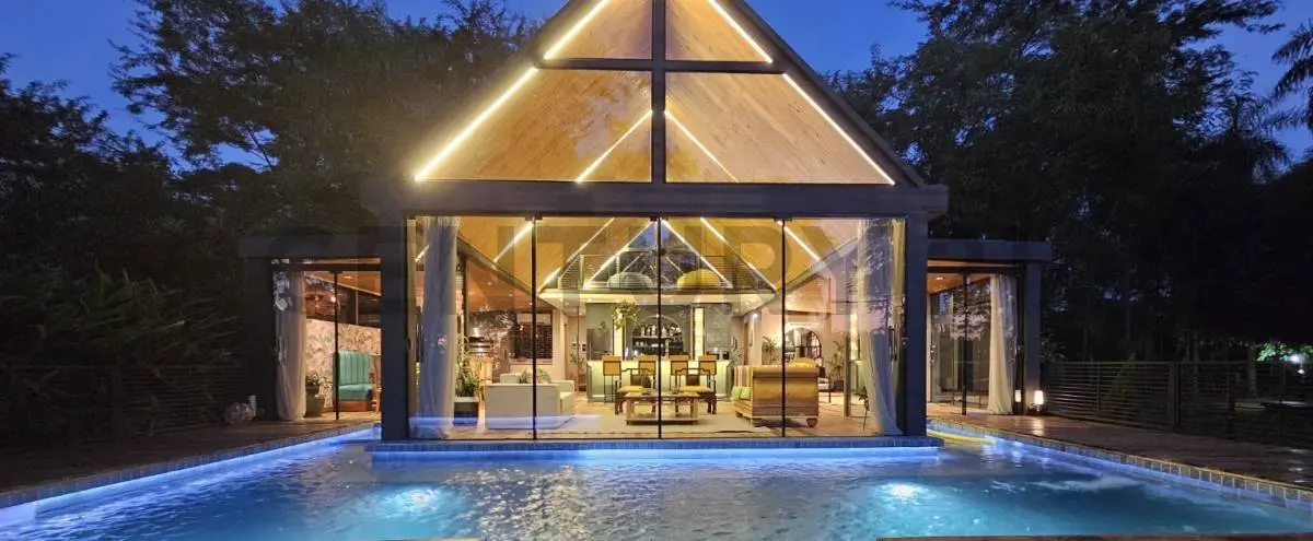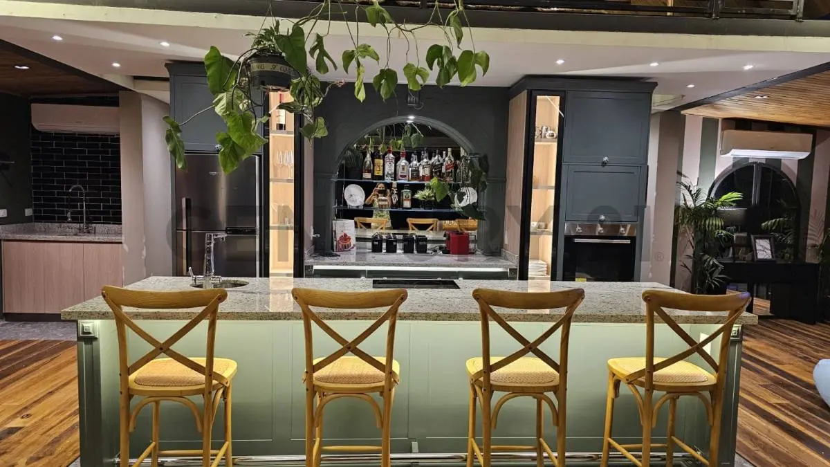 Sala, cocina, quincho integrado
