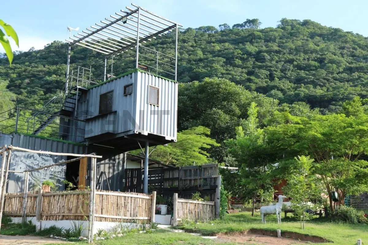 • Cabaña container: 1 cama doble, 1 matrimonial, baño, parrilla privada y terraza independiente.