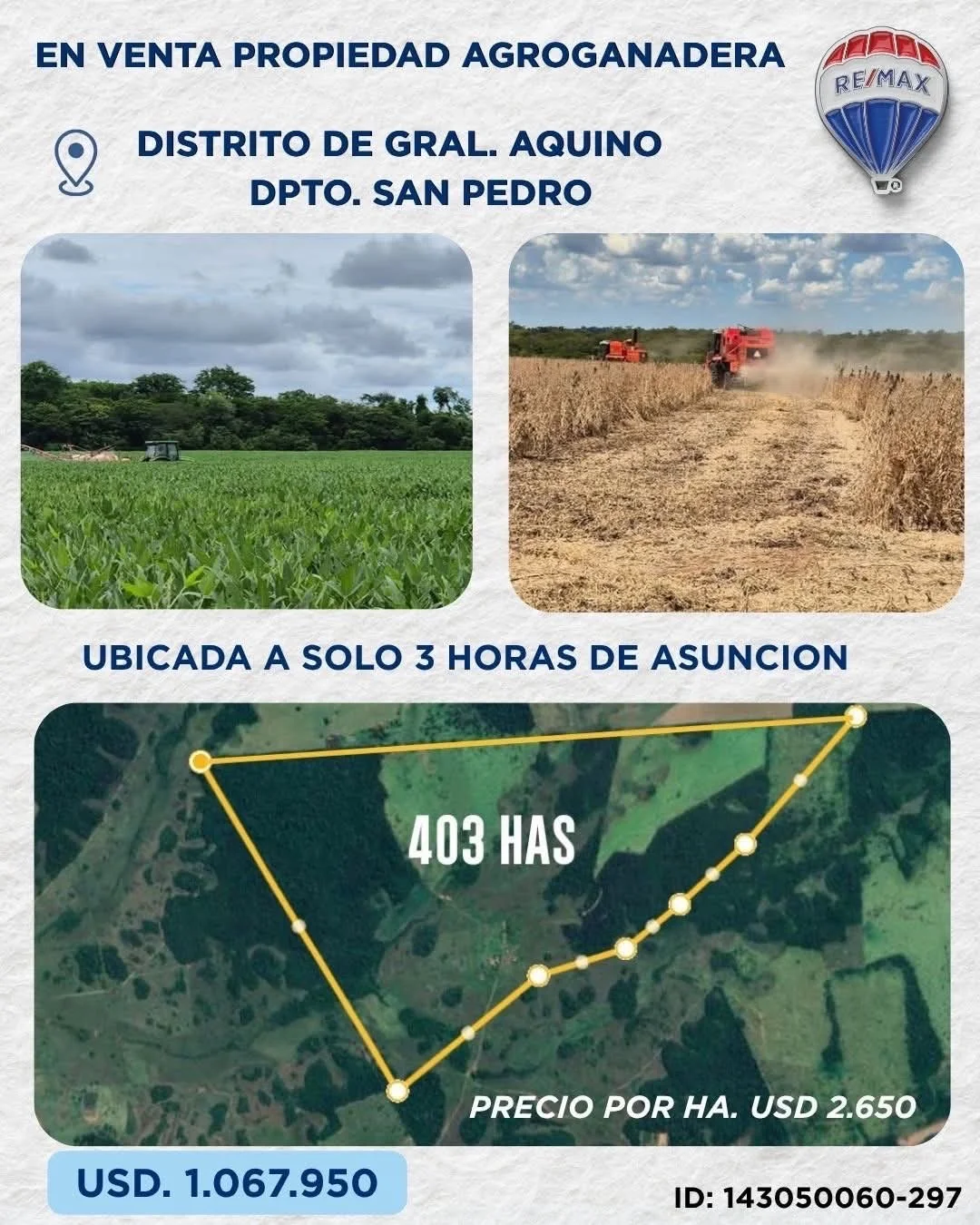 Precio: USD 2.650 por hectárea. Una oportunidad competitiva por ubicación, diversidad de uso y potencial de desarrollo.