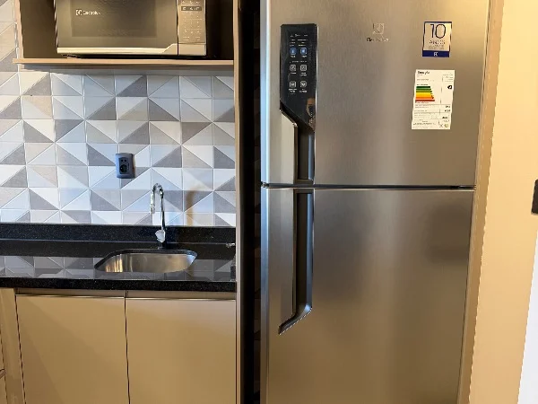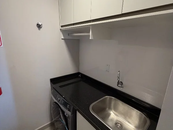 Cocina integrada y equipada con anafe, horno empotrado, extractor, microondas, heladera de última generación y ¡un lavarropas que lava y seca!
