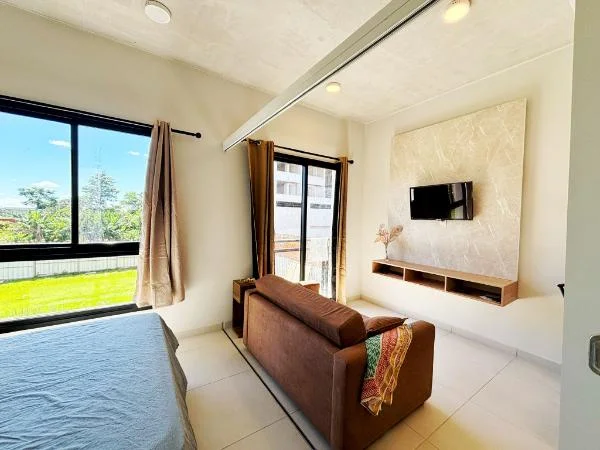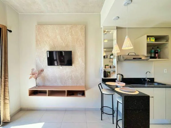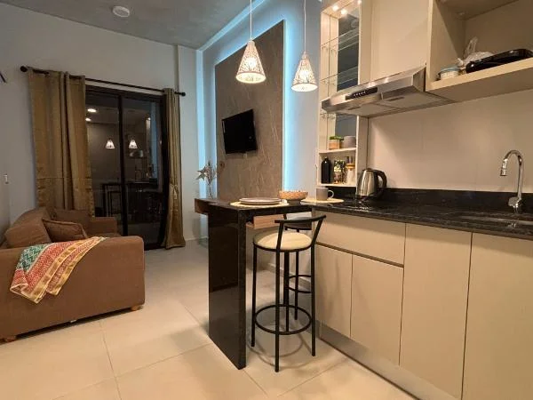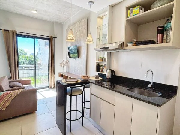 El departamento destaca por sus terminaciones de excelente calidad y un estilo moderno y funcional. Cuenta con un ambiente integrado muy luminoso, cocina equipada con anafe, extractor y desayunador de granito, además de un acogedor balcón que aporta amplitud al espacio.