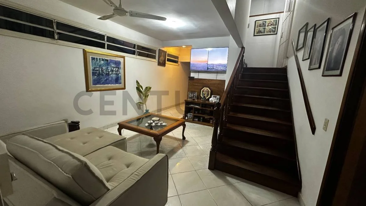 Ingreso principal con estar social y baño social. Comedor íntimo y cocina separada. Sala y comedor social.