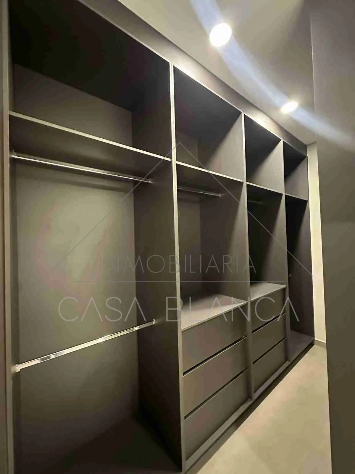 • Dormitorio principal en suite, con vestidor y aire acondicionado de 24.000 BTU. El baño con espejos, luces led, mesada de mármol, cuenta con tragaluz y ventana con sistema de apertura a control remoto. Lámparas colgantes