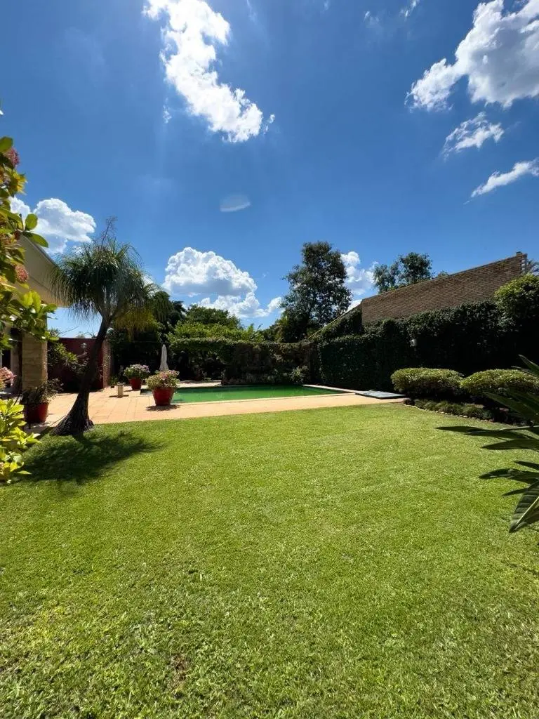 Espacios exteriores: Amplio jardín con piscina y quincho techado.