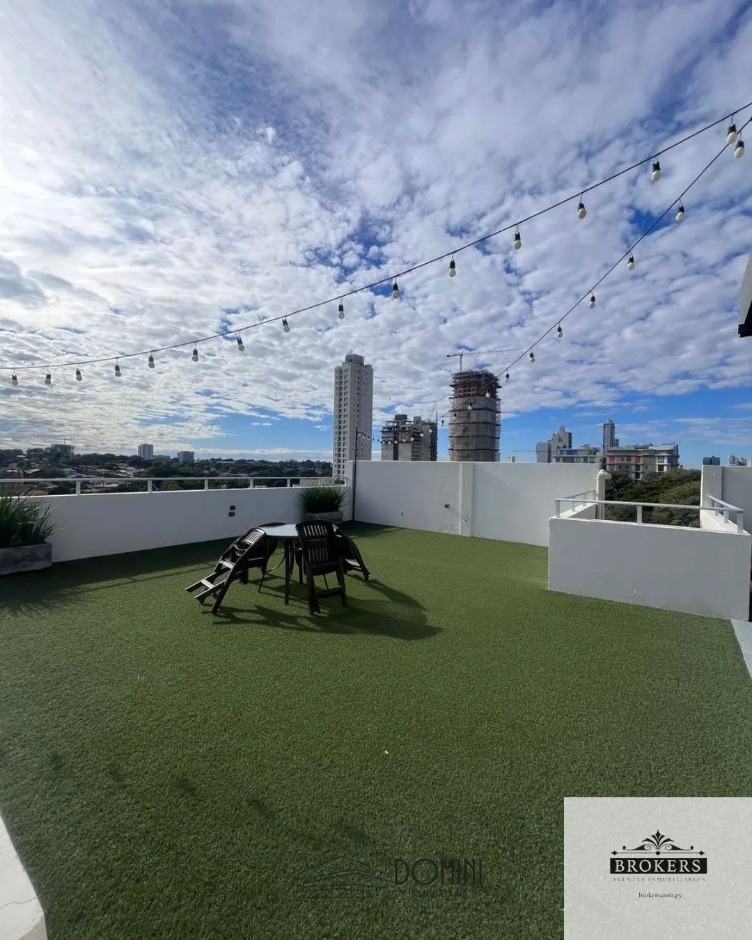 Comodidades: 3 habitaciones, baño familiar, baño en suite del dormitorio principal, Living, Comedor, Baño social, Cocina cerrada, Área de servicio con su baño, Balcón con parrilla, Todas las ventanas con mosquiteros, El balcón tiene cortinas anti-sol de exterior, Cortinas en habitaciones, living y cocina, 2 cocheras (para 2 autos pequeños), Terraza con quincho y piscina.