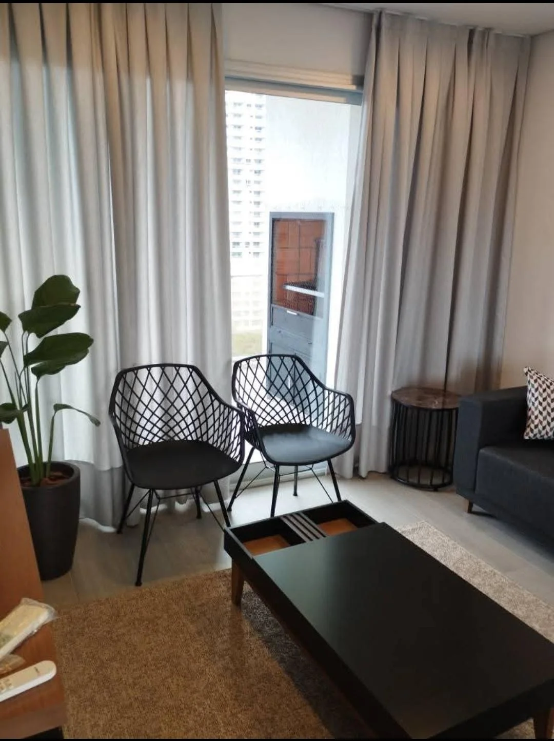 Balcón con parrilla.