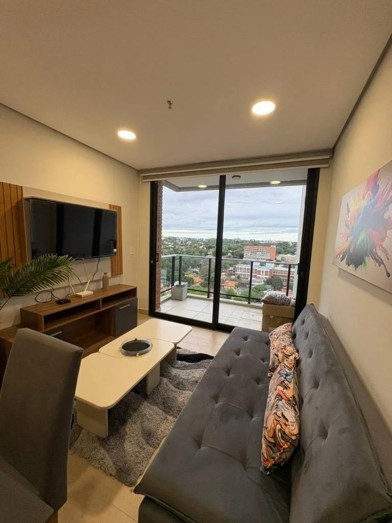 Ubicado en el piso 15 del Ed. Matrisa Boggiani, Villa Morra, este elegante departamento totalmente amoblado combina confort, estilo y una vista inmejorable de la ciudad.