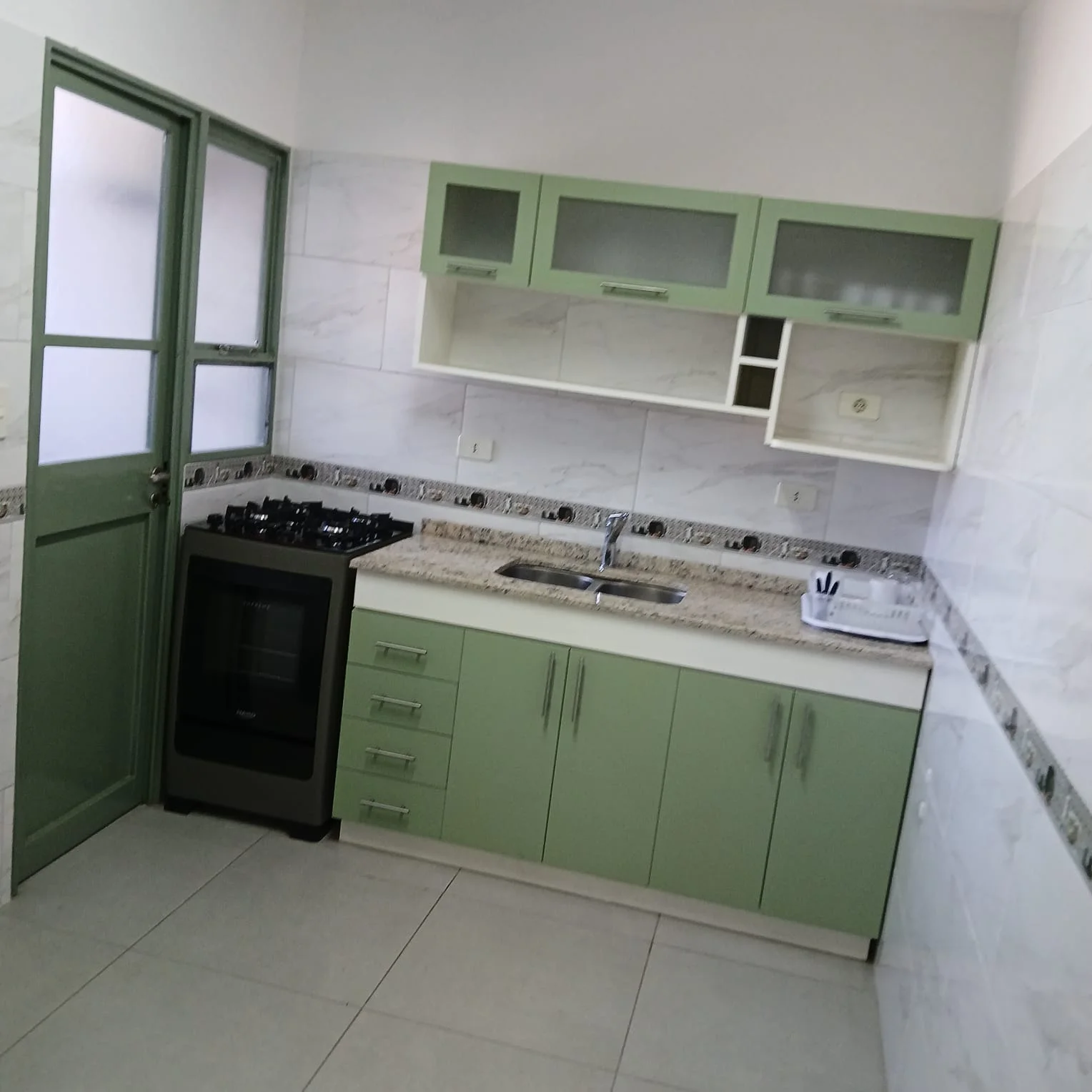 ????️ Cocina independiente, con heladera, cocina de 4 hornallas con horno, de encendido eléctrico.