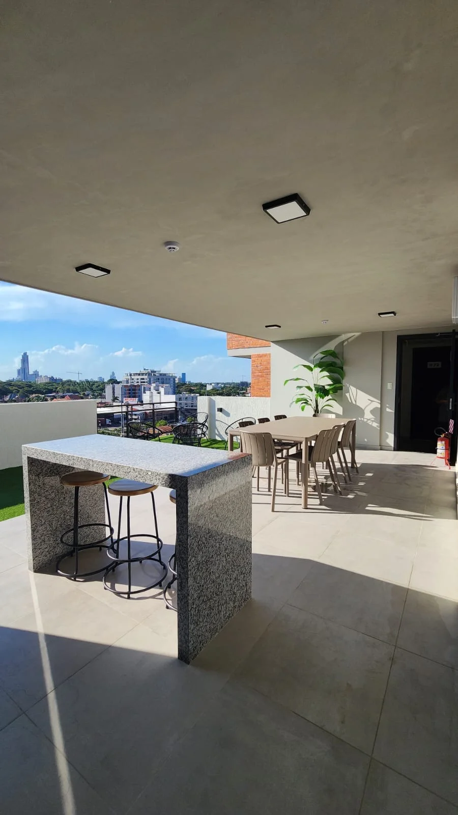 * Balcón espacioso con vista panorámica al aeropuerto.