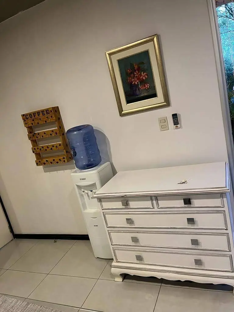 Departamento de 2 habitaciones, una en suite con placard y la otra es un escritorio, baño social, sala cocina comedor integrados, amplio balcon, lavadero, con todos los utencilios de cocina