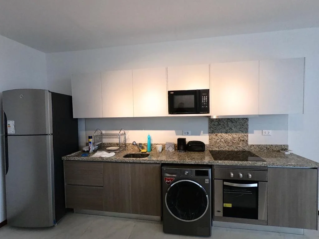 1 dormitorio. 1 baño. Sala con cocina integrada y balcon con parrilla