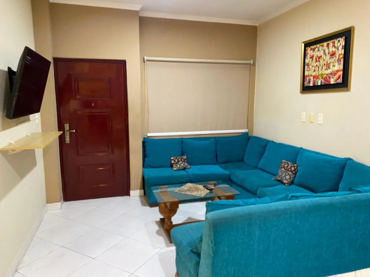 - Una habitación en suite con balcón, placard, aire acondicionado, tv y cortinas anti solares.