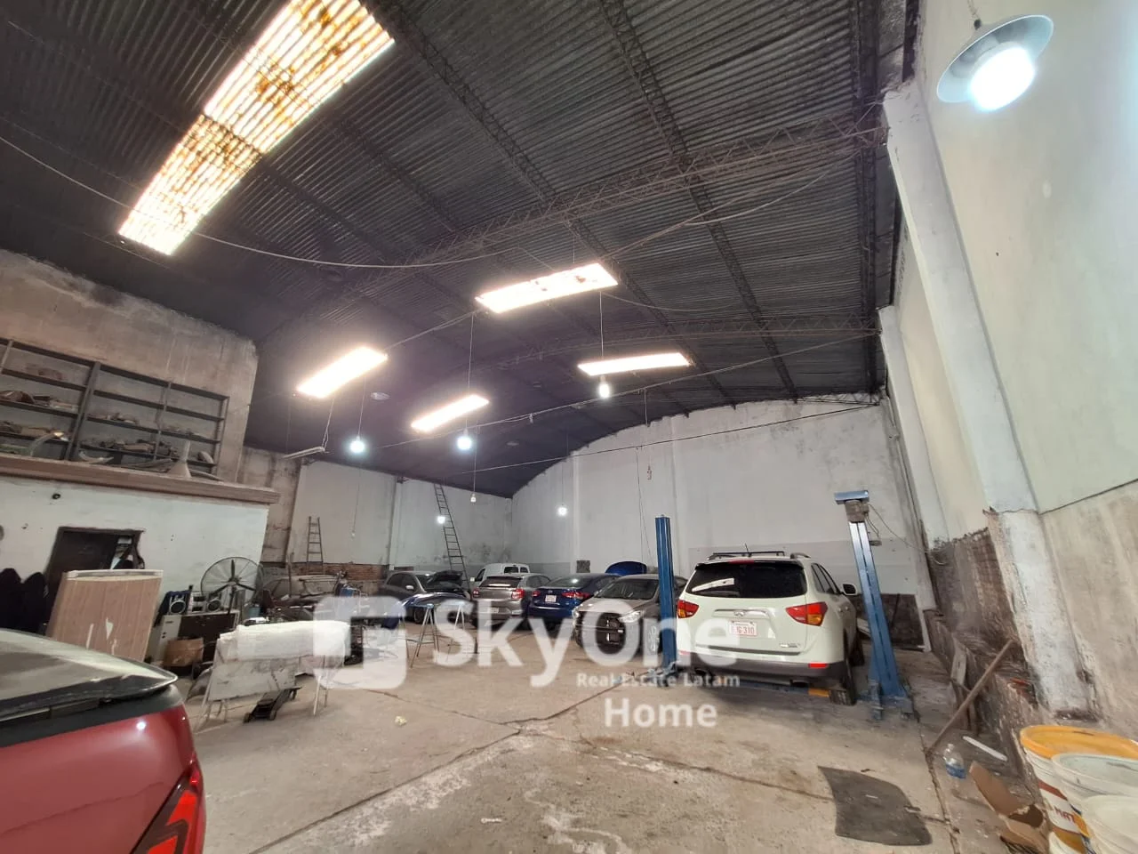 Gran tinglado ideal para Taller de vehículos livianos o depósito, con baño y vestuario, un altillo en el que pueden instalarse oficinas