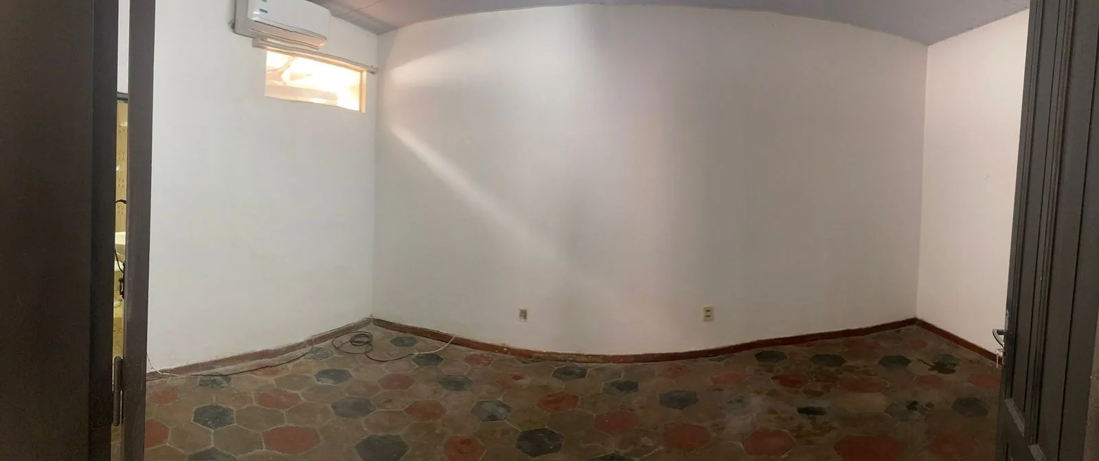 Sala con ventana de vidrio templado, cortina roller vertical, todo bien iluminada cuenta con a.a. Detalles de la época