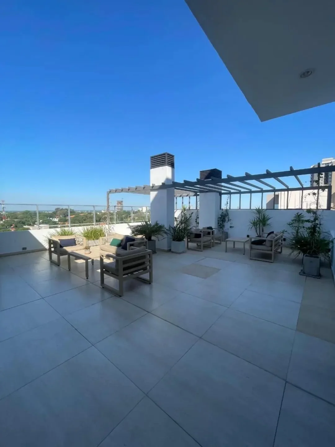 Amplia terraza con área verde