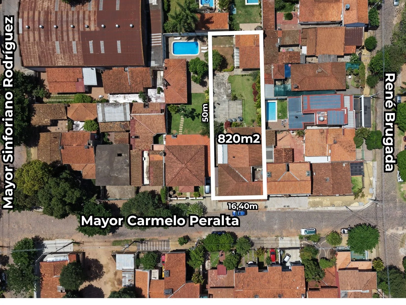 Terreno: 16,40m x 50m (820 m² totales).