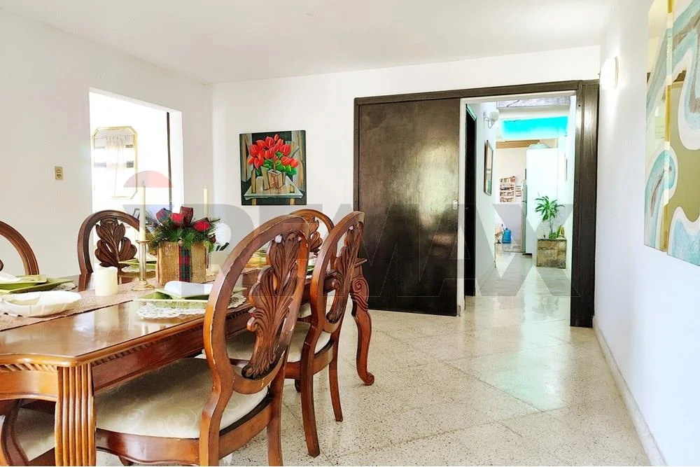 La propiedad cuenta con un garaje para vehículos, patio exterior, sala, comedor social, baño social, estar íntimo, cocina comedor diario, 3 dormitorios. Un amplio patio con quincho con parrilla, piscina y área de servicio con dormitorio y lavadero.