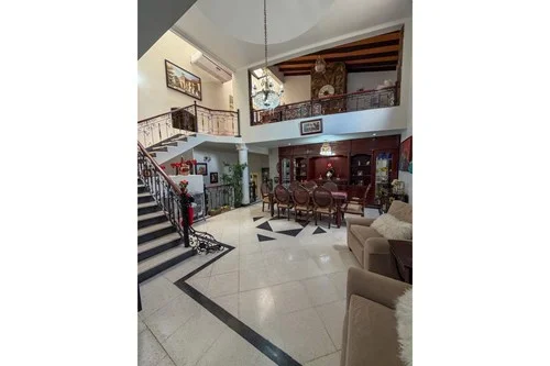 En venta casa con detalles que lo hacen únicos en Asunción, empezando desde la arquitectura y terminaciones al estilo Europeo, donde se combinan a la perfección la elegancia de una residencia de lujo con la robustes de un castillo medieval, ubicada en el Barrio Jara, en un barrio residencial, con crecimiento constante, próxima a centros educativos, Colegio San Andrés, San Ignacio de Loyola, Universidad Americana, Colegio Frances, centros sociales y deportivos, Club Olimpia, Libertad, complejo santos, club deportivo alemán, club centenario. De fácil y rápido acceso al Sanatorio La Costa, Santa Julia, Hospital Americano, cercano a importantes avenidas, Gral. Santos, Artigas, Brasilia, Avda. España y Mcal. López. Sup. de terreno: 570 m2 Sup. Construida: 910 m2 PLANTA BAJA 2 Portones Basculantes, murallas de piedras Garaje frontal para 3 vehículos Área de servicio con dormitorio y baño privado Área de portería o guardia de seguridad con baño privado Área de lavadero Hall de acceso, donde destaca importante puerta principal de doble hoja de 2 metros de apertura. Segundo acceso lateral con dirección a la cocina o comedor Sala de estar con balcón con y acceso al patio Comedor social integrado con pisos de granito y finas terminaciones. Rack y mobiliario empotrados, de fina madera y elegante cristalería, se ubica una araña central importada. Cocina amoblada con muebles ACHON, con horno, anafe y extractor, empotrados. Baño social con vitrales Dormitorio en suite con vestidor americano Dormitorio secundario, con un baño familiar Patio empastado Piscina con cascada Sauna para 4 personas ENTREPISO Escalera con finas terminaciones, de acceso a la planta alta y al entrepiso. Amplio estar familiar, piso de fina madera de lapacho, con chimenea de piedra laja, y mini bar, con iluminación decorativa. Escritorio, con piso de madera de lapacho, con gran biblioteca empotrada, con baño privado y vitrales en la puerta. Dormitorio secundario Master suite con jacuzzi, puerta corrediza, vestidor americano, balcón con vista a la piscina y a las torres. INSTALACIONES TRASERAS Amplia Galería con gran parrilla, bar, tatakua, piso de porcelanato simil madera Galería climatizada, con acceso al quincho Amplio espacio utilizado como gimnasio con piso parquet Terraza con piso de madera con vista a la Ciudad. Dormitorio en suite tipo tipo Dúplex Precio: 450.000 usd