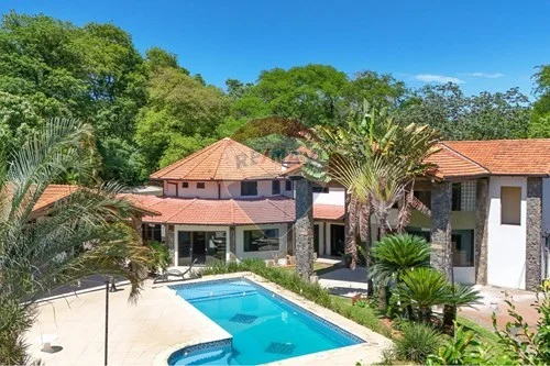 Al frente de la casa un hermoso y amplio quincho con parrilla con vista a la piscina y cancha de futbol