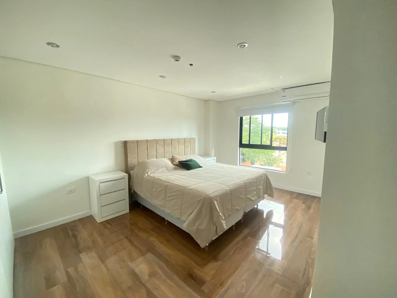 Amplio departamento en alquiler en el prestigioso barrio B° Mariscal Estigarribia, ubicado sobre la campos Cervera y R.I. Corrales Edificio Perpetuo Socorro a pasos del Shopping Villa Morra, Café de Acá los Laureles, Centro Médico Bautista y A tan solo una cuadra del colegio Técnico Nacional de Asunción.