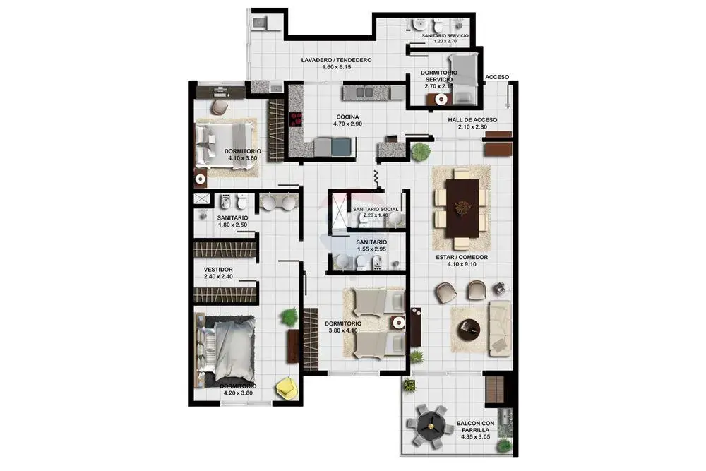 3 Dormitorios (1 en suite)